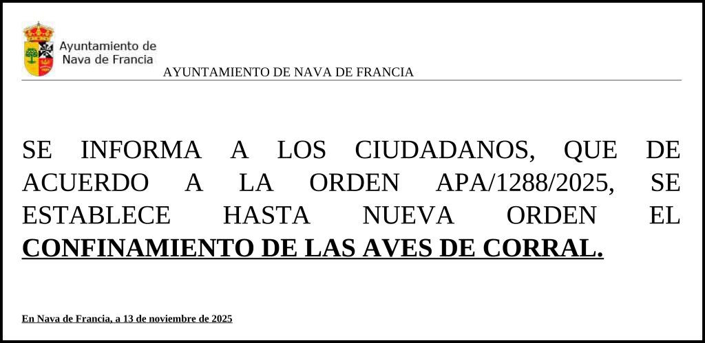Bando Confinamiento Aves Noviembre 2025